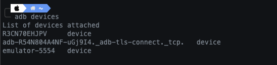 adb 를 사용할 때 가장 기본이 되는 명령어가 아닐까 싶다. 위 명령어로 현재 PC와 연결된 Android 디바이스들의 목록을 볼 수 있다.