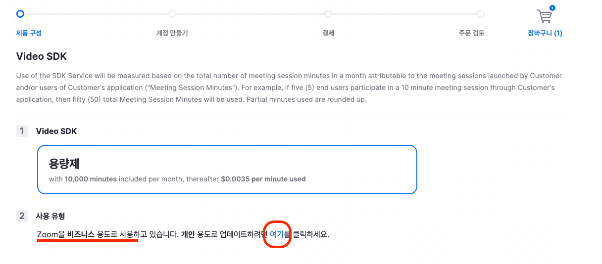 2-2) Video SDK 페이지로 이동하여 SDK 구매