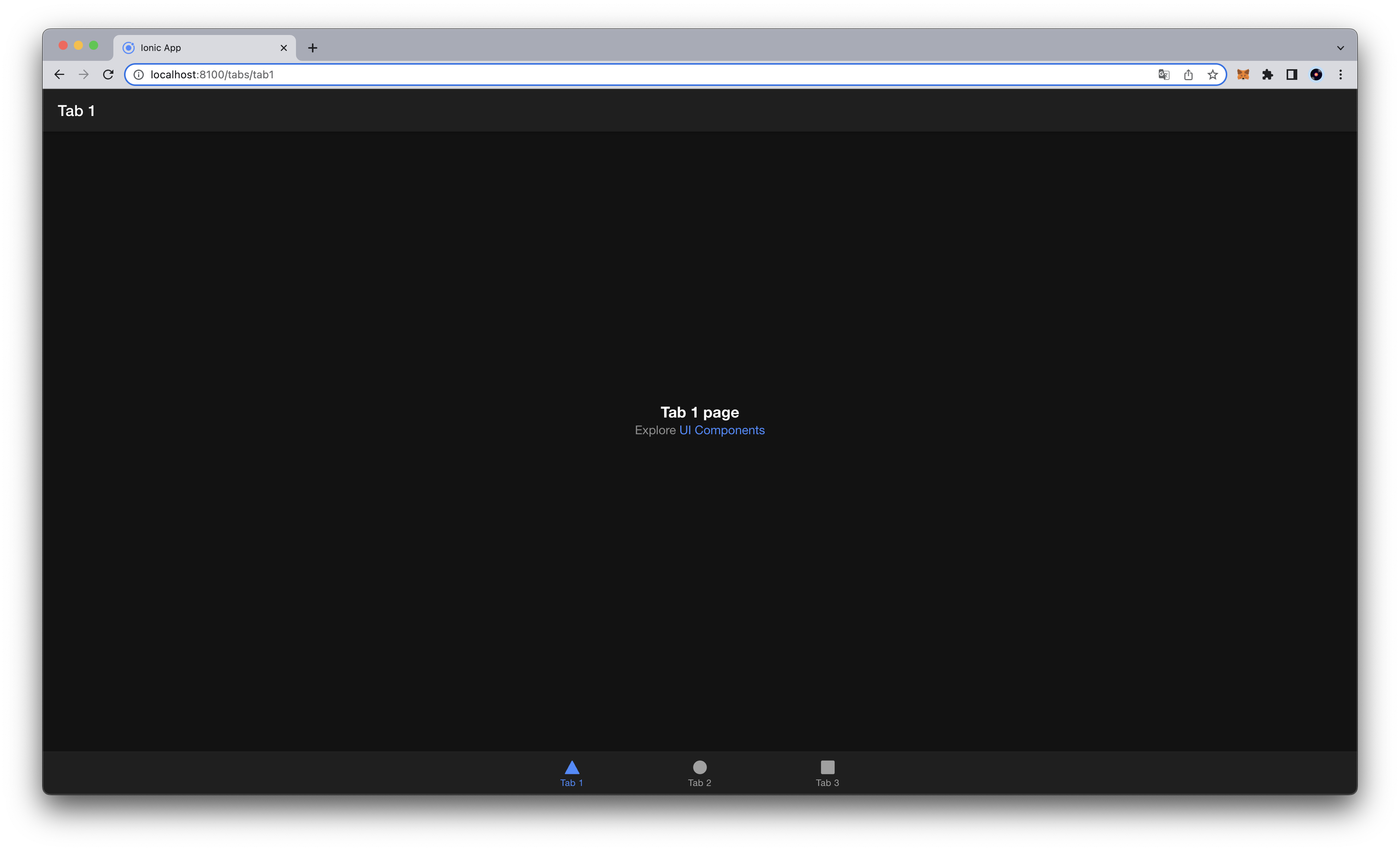 위 명령어를 실행하면 새로운 브라우저 창이 생성되면서, 현재 실행시킨 Ionic 앱의 모습을 볼 수 있다.