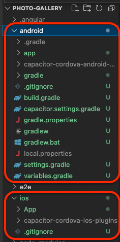 폴더 안에 Android, iOS 프로젝트가 생성된 것을 확인할 수 있다. 위 폴더들은 Ionic 앱의 일부분임과 동시에 완전히 독립적인 기본 프로젝트들이다. 웹 디렉토리(Default: www) 를 업데이트하는 빌드 과정("ionic build") 을 수행할 때마다, 해당 업데이트 사항들을 네이티브 프로젝트에도 복사해줘야한다. 다음 명령어를 사용한다.