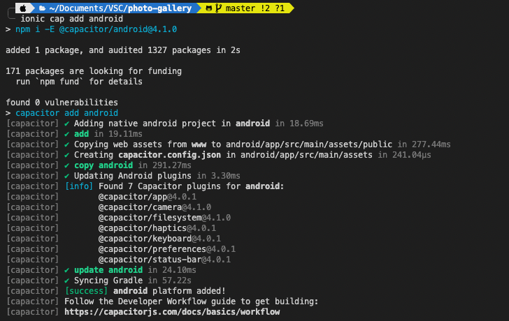 새로운 플러그인을 추가하는 것과 같이 코드에서 네이티브와 관련된 부분을 업데이트 할 때는 "sync" 명령어를 실행한다.