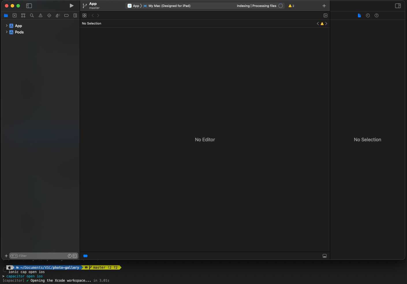 먼저, Capacitor 를 "open" 하는 명령어를 실행하여, iOS 프로젝트를 Xcode 로 열어준다.