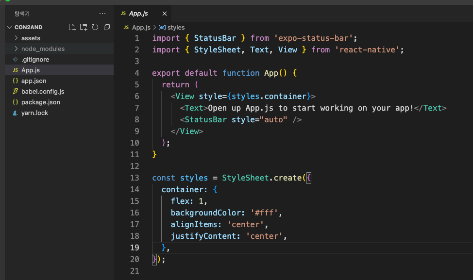 ReactNative CLI 나 Expo 를 통해 Project 를 생성하면 에디터로 해당 Project 폴더를 열어준다.
