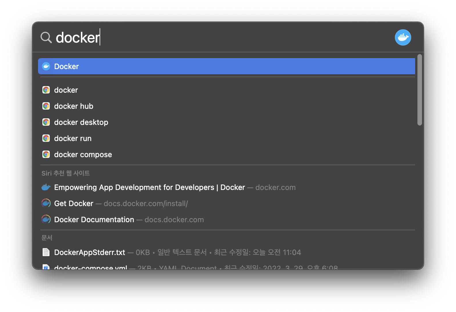 4. Docker Desktop 실행 ("응용 프로그램" 폴더에서 실행 or Spotlight로 실행)