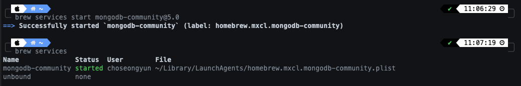 macOS에서 MongoDB를 Service 또는 Background Process로 실행할 수 있다. 다만 MongoDB는 macOS Service로 실행하는 것을 권장한다. macOS Service로 실행하면 시스템 ulimit 값을 자동으로 알맞게 설정해주기 때문이다.