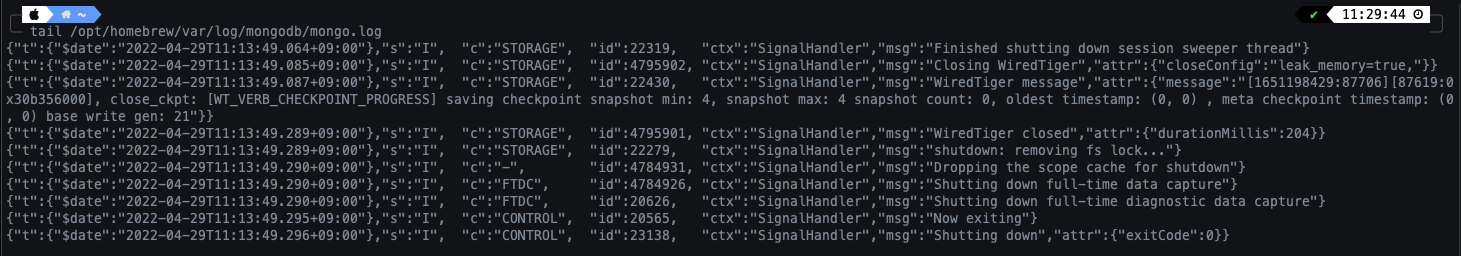 - Apple Chip : /opt/homebrew/var/log/mongodb